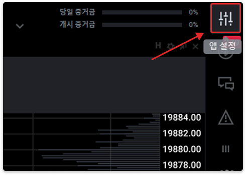 트레이도베이트에 로그인 후 우측 상단 앱 설정을 클릭해주세요.