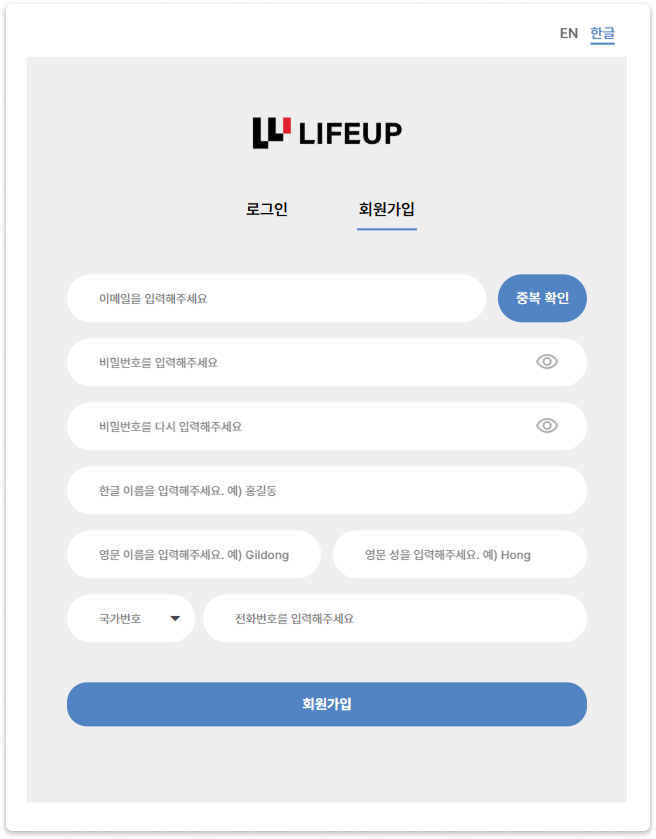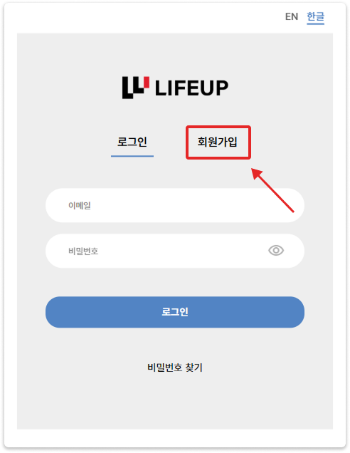 라이프업 대시보드에서 [회원가입]을 클릭해주세요.