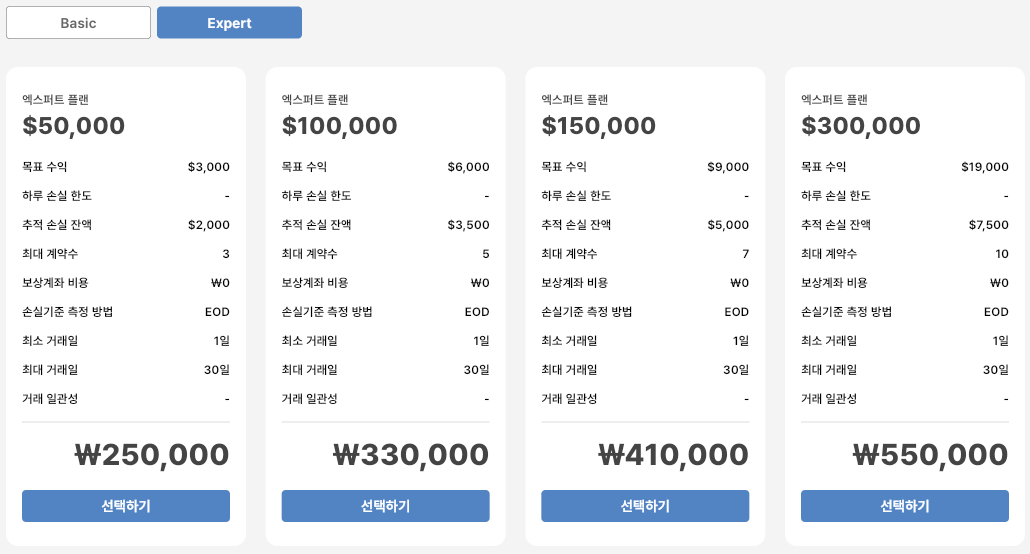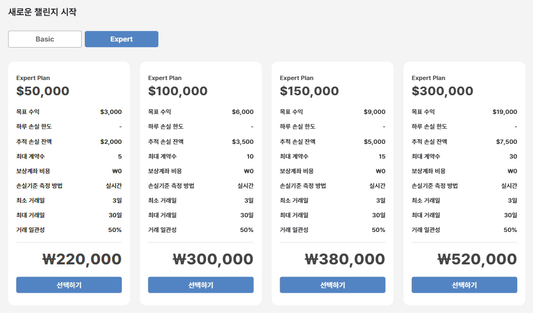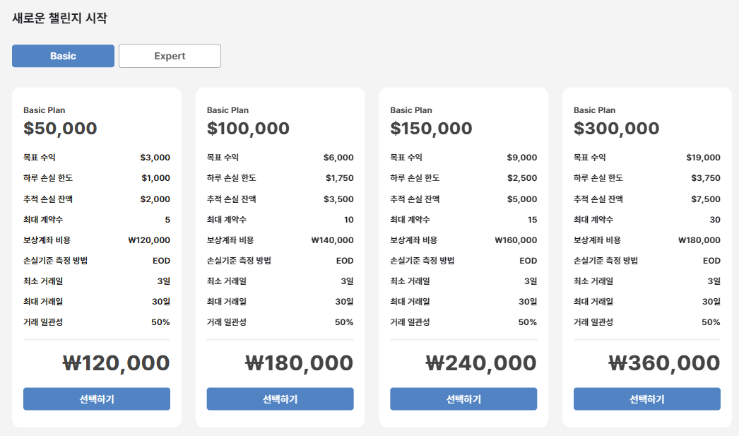 구매한 도전계좌가 보이면 모든 준비가 끝났습니다. 도전계좌가 보이지 않을 경우 1:1 고객센터로 문의해주세요.이제 실력을 아낌없이 발휘해주세요!