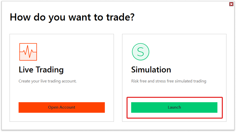 이후 트레이딩 모드 선택 화면에서 Access Simulation을 클릭해주세요.