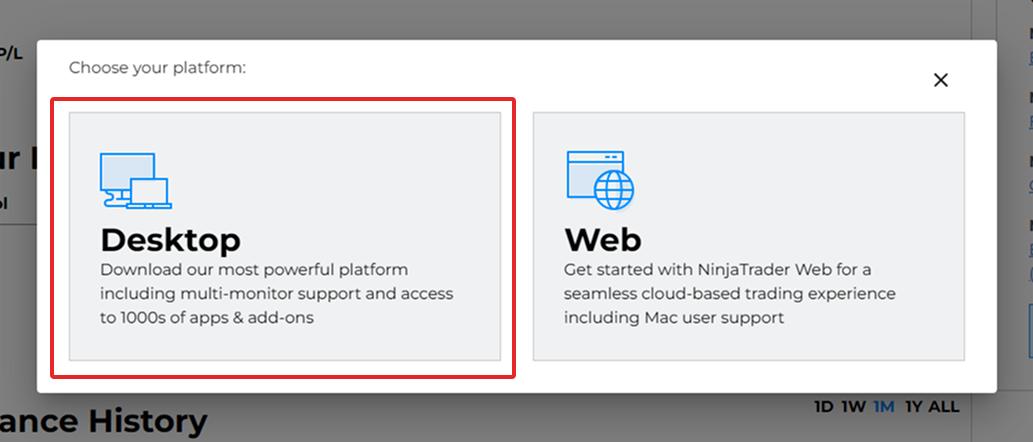 대시보드 플랫폼 다운로드 탭에서 닌자트레이더를 클릭해주세요.