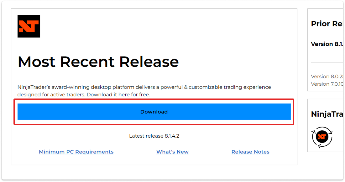 Download를 클릭하여 닌자트레이더 설치파일을 다운받은 후 설치해주세요.